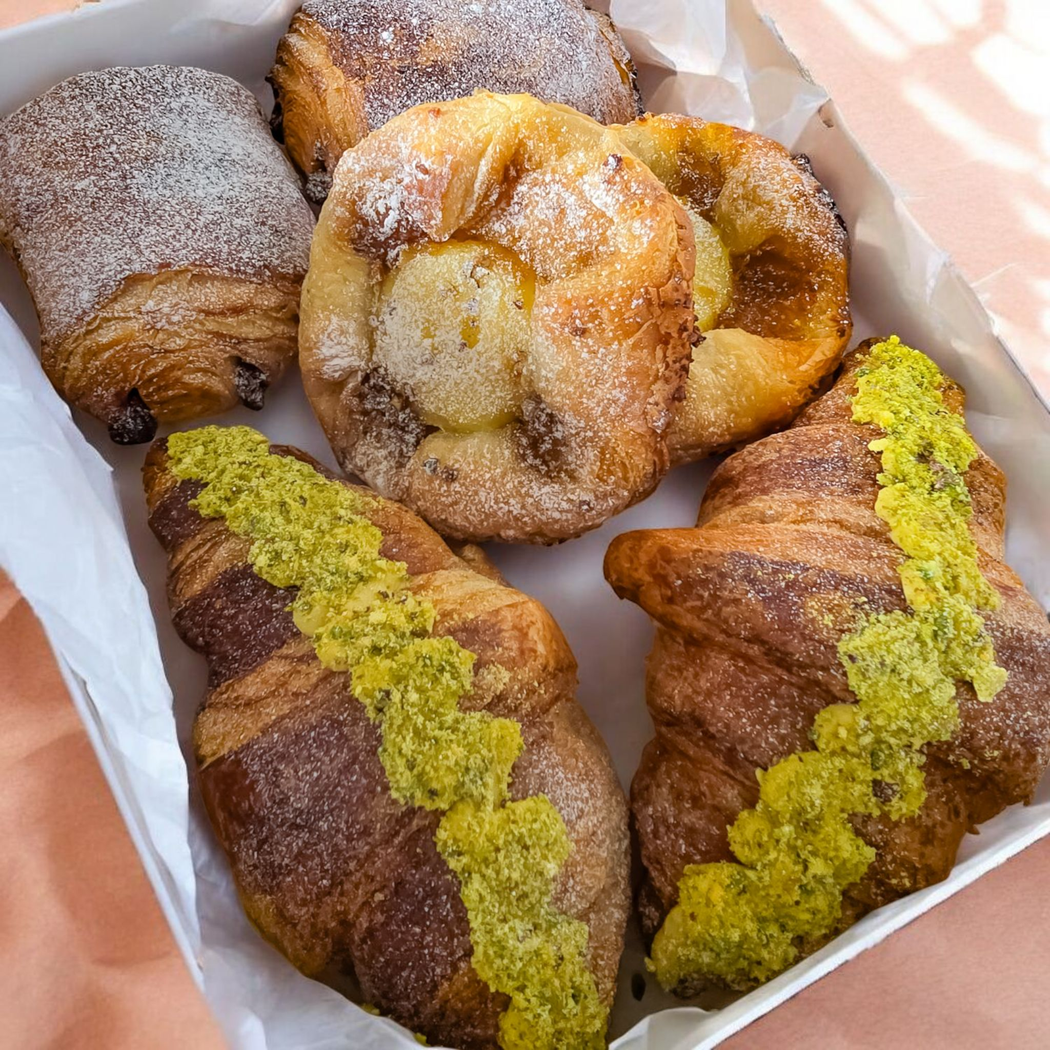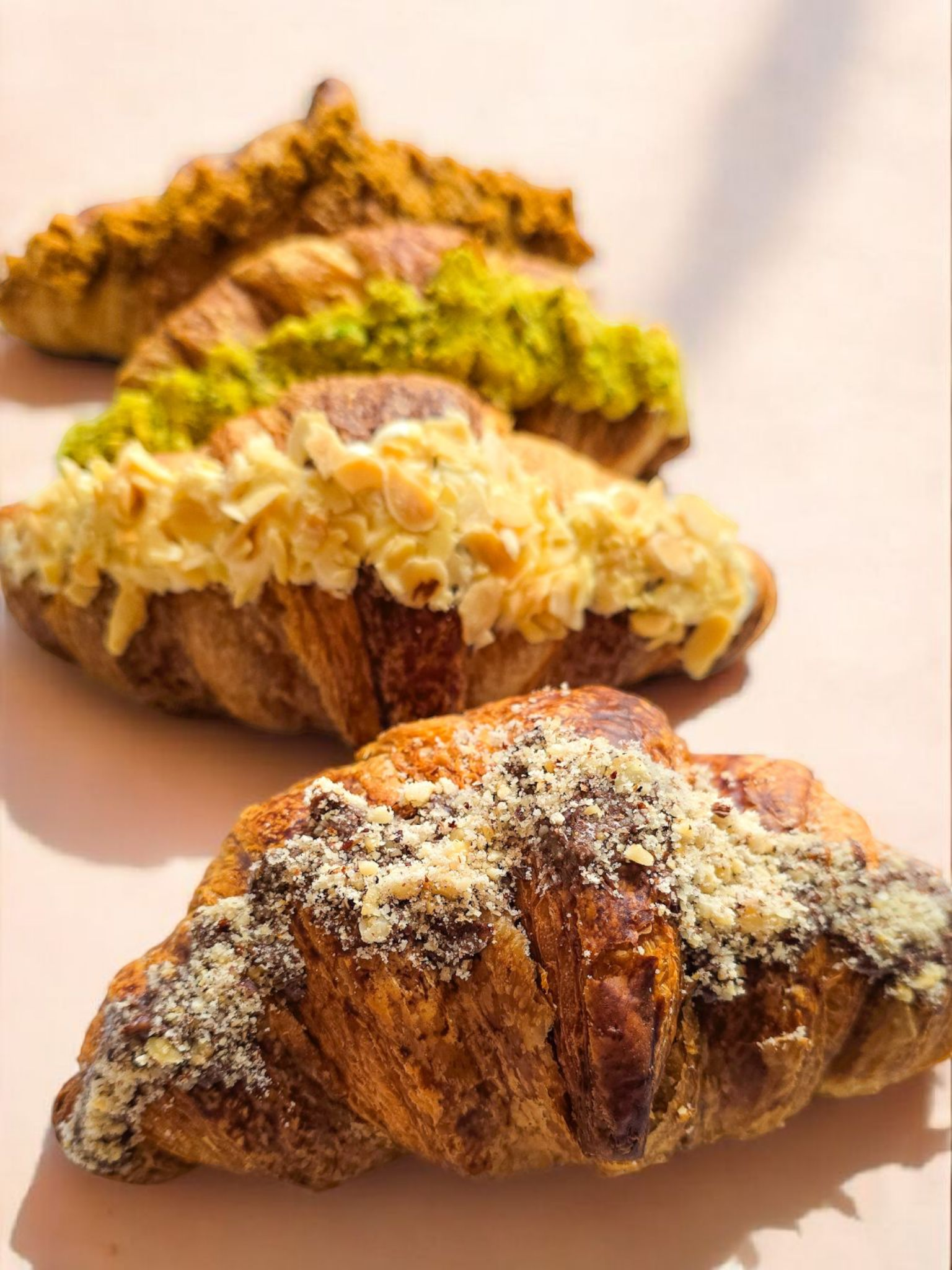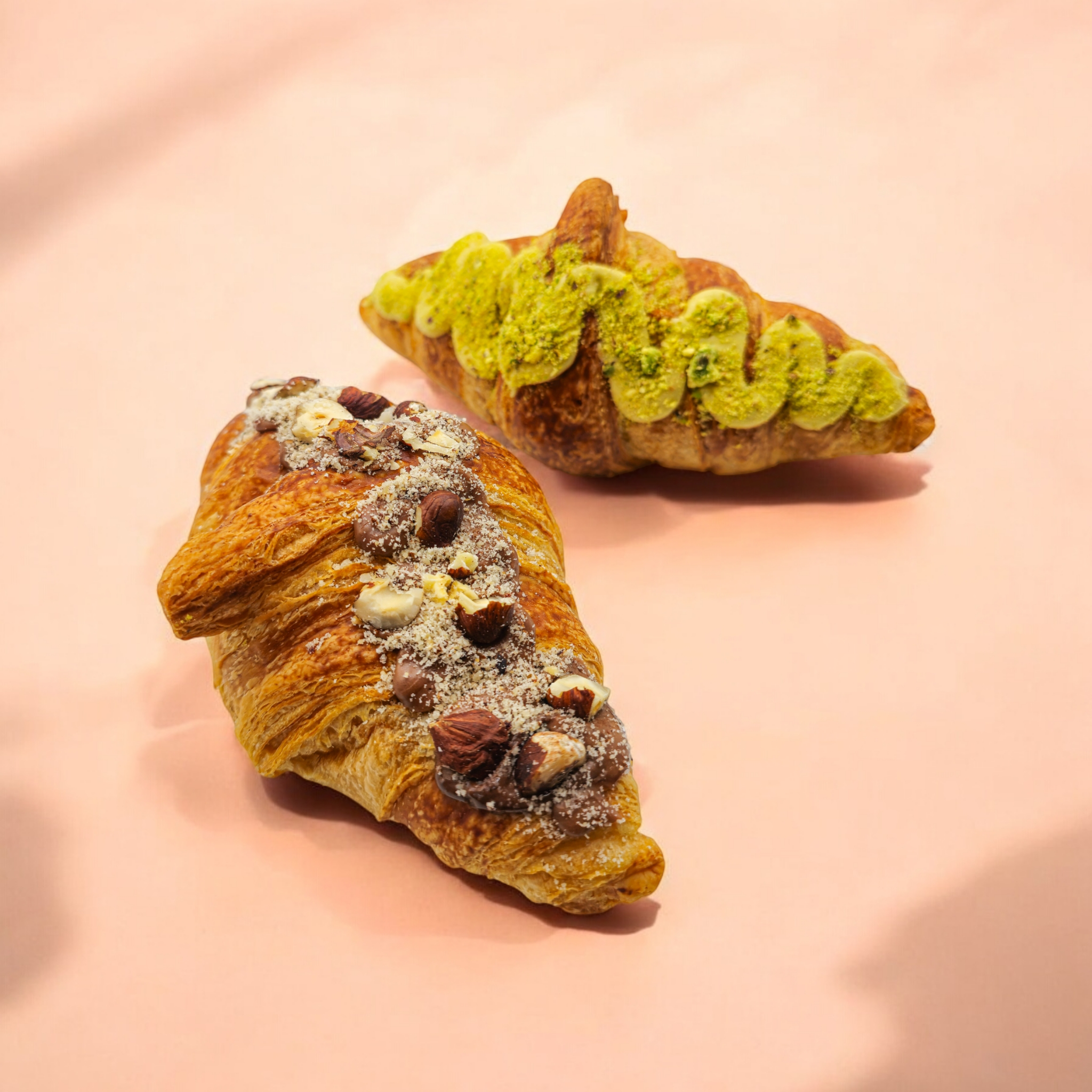 Croissant Flavours - Pistachio, Biscoff, Nutella, Almond, Blueberry, Raspberry.